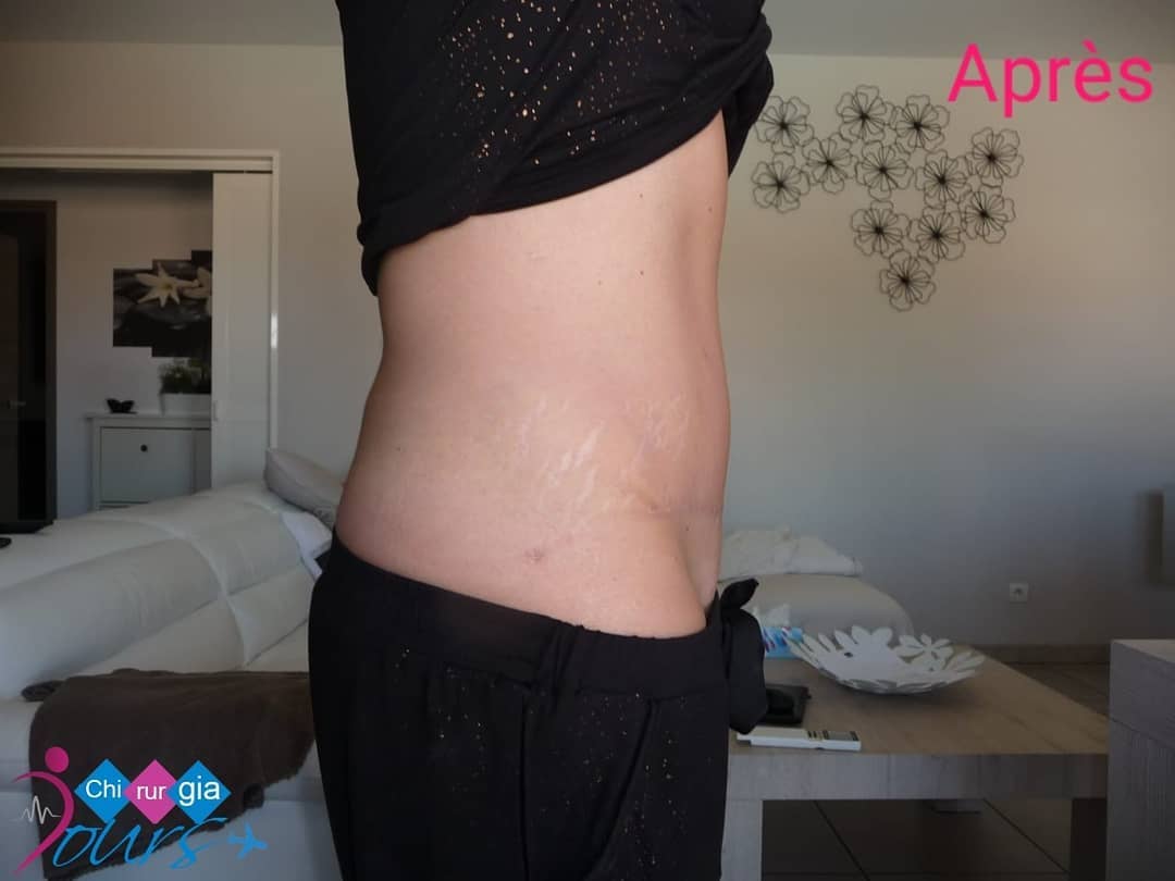 A first suture will be located at the level of the lower abdomen, so that it can be hidden in the natural folds of the skin in the groin area. The resulting scar can be covered by a slip or a swimsuit.